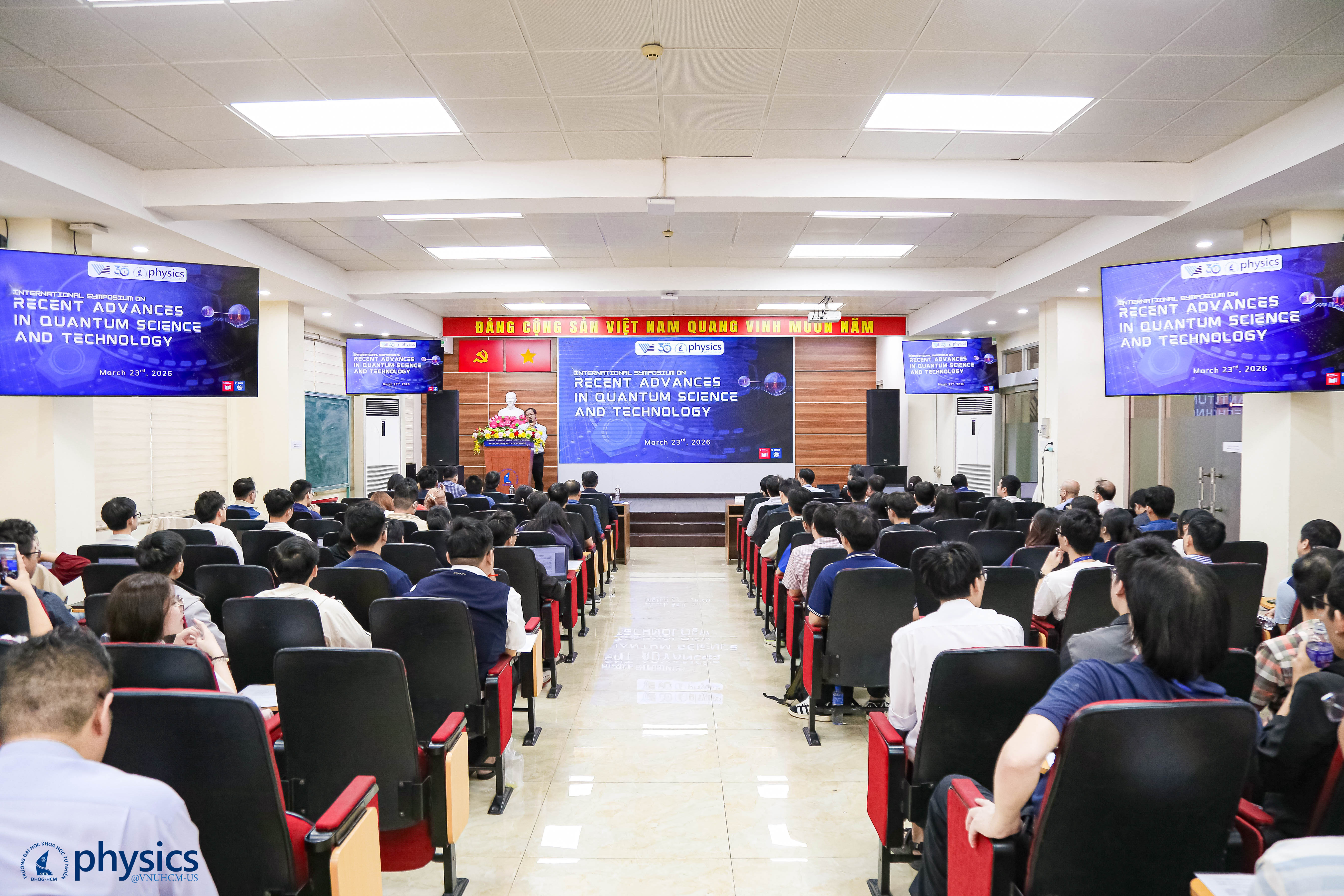 Ngày 23/03/2026, Khoa Vật lý – Vật lý kỹ thuật đã tổ chức thành công hội thảo quốc tế “Khoa học và công nghệ lượng tử” ISAQST2026. Hội thảo được tổ chức với chương trình khoa học phong phú, quy tụ các chuyên gia đầu ngành và các nhà khoa học trong và ngoài nước về lĩnh vực vật lý lượng tử cả lý thuyết và thực nghiệm. Nội dung học thuật được triển khai theo bốn phiên chuyên đề, phản ánh những xu hướng nghiên cứu cốt lõi của vật lý hiện đại.