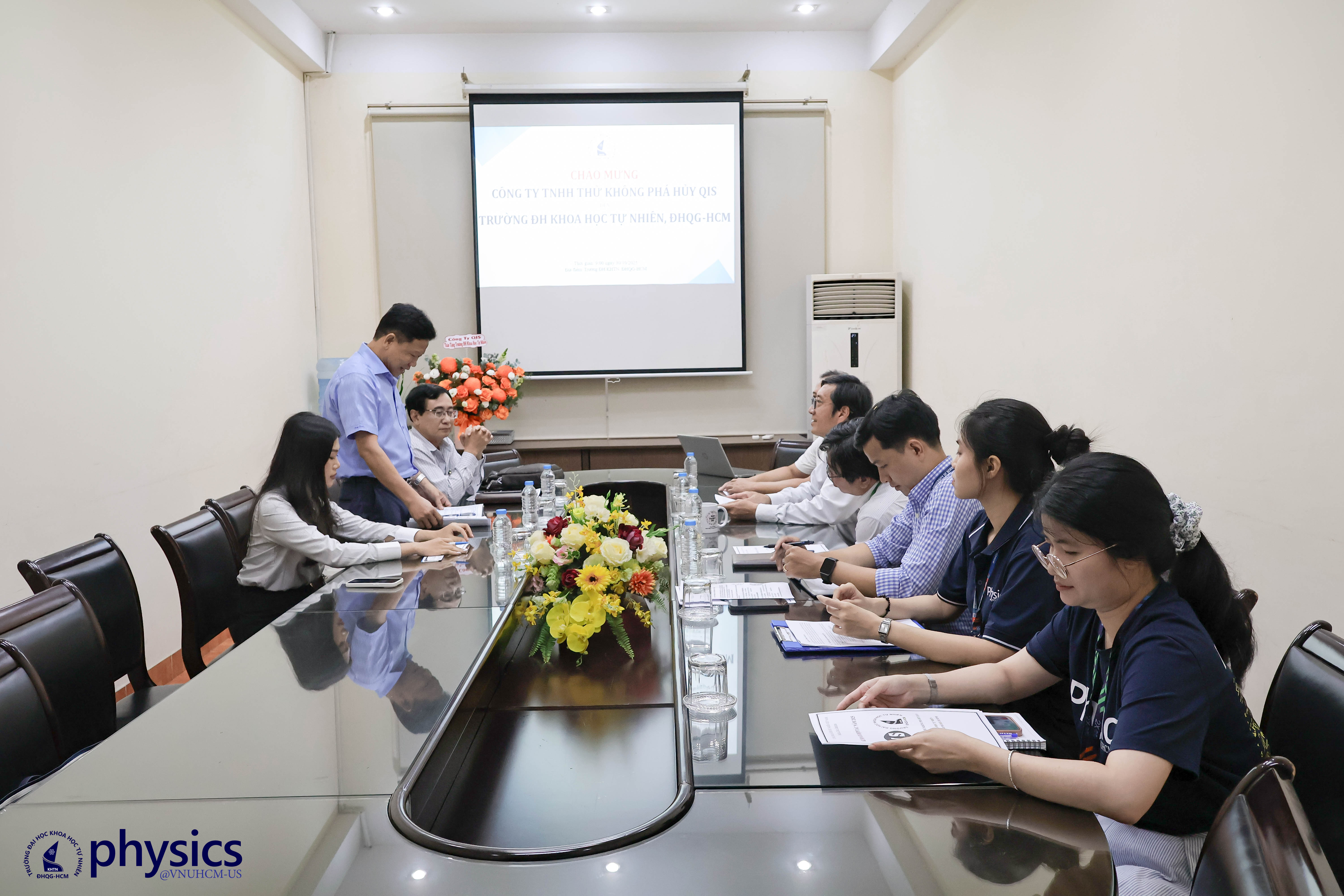 Công ty TNHH Dịch vụ Thử không phá hủy QIS và Khoa Vật lý – Vật lý kỹ thuật, Trường Đại học Khoa học tự nhiên, ĐHQG-HCM đã có buổi làm việc và trao đổi định hướng hợp tác trong nhiều lĩnh vực trọng điểm, hướng đến mục tiêu tăng cường mối liên kết giữa đào tạo đại học, nghiên cứu khoa học và nhu cầu thực tiễn của doanh nghiệp. Buổi làm việc diễn ra trong không khí cởi mở, chuyên nghiệp và mang tính xây dựng, thể hiện rõ tinh thần hợp tác và cam kết đồng hành lâu dài giữa hai bên.