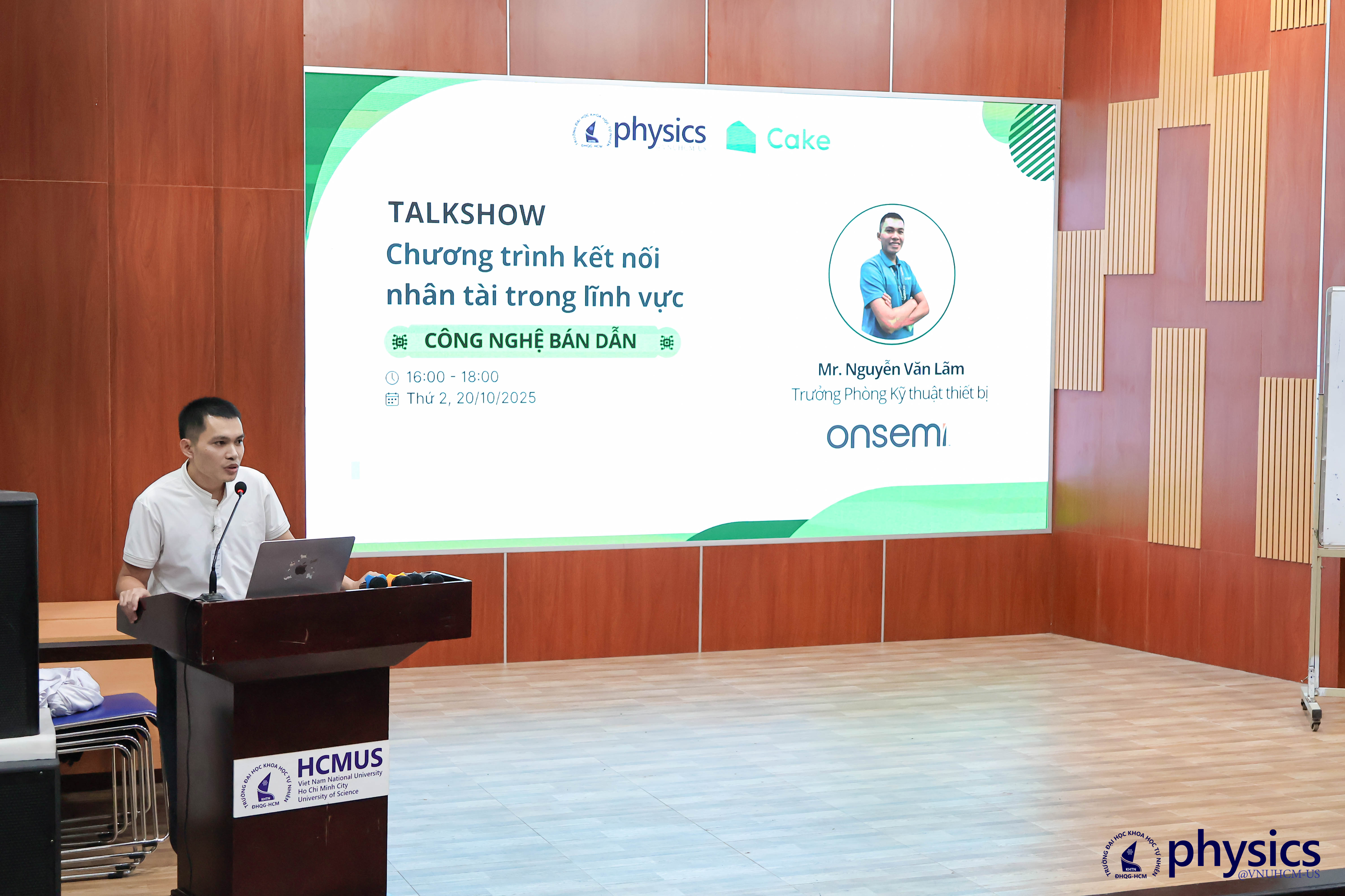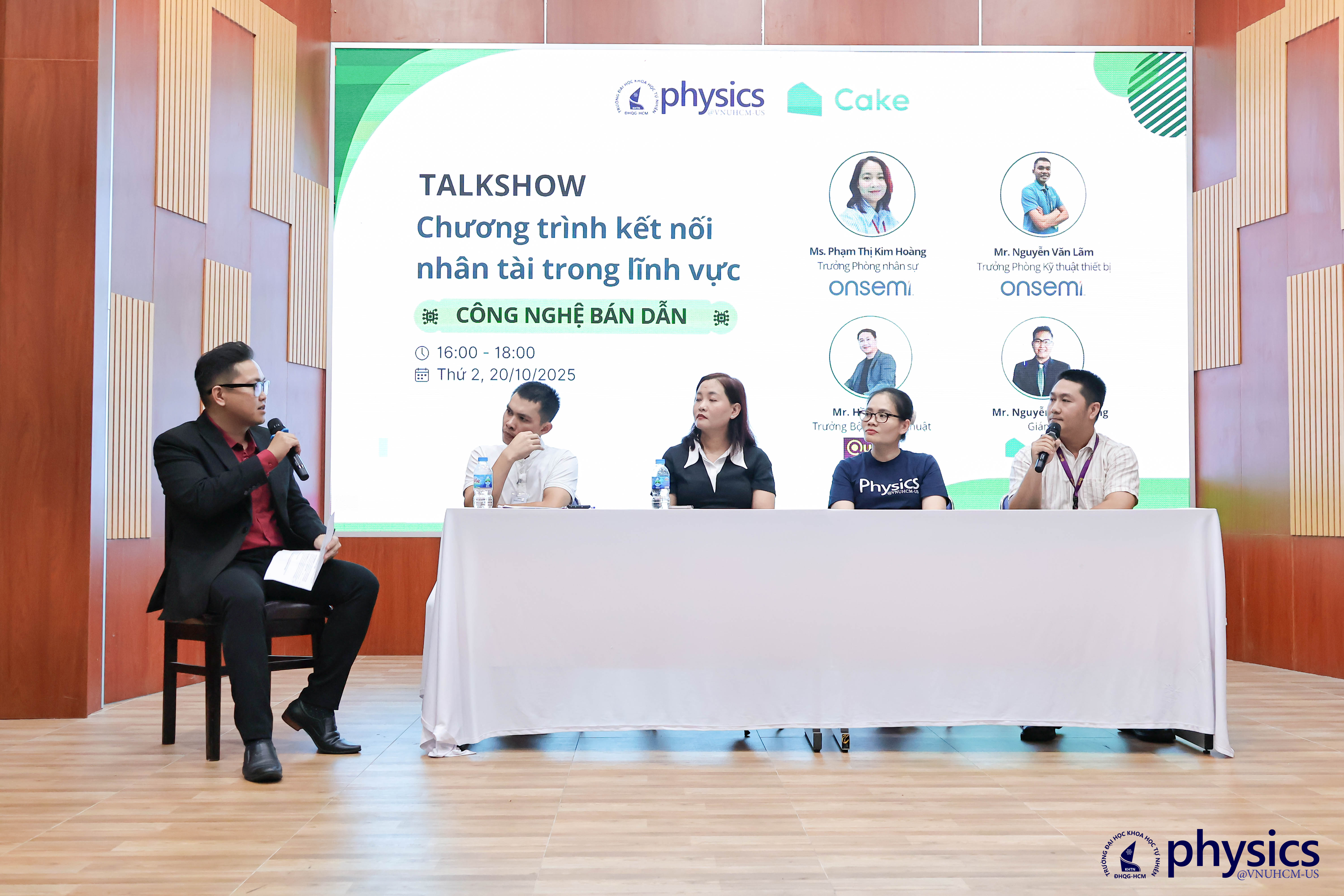Nhằm mang đến cho sinh viên cái nhìn toàn diện và thực tế hơn về ngành công nghệ bán dẫn – một trong những lĩnh vực then chốt của khoa học và công nghệ hiện đại, Khoa Vật lý – Vật lý kỹ thuật, Trường Đại học Khoa học tự nhiên, ĐHQG-HCM đã phối hợp cùng các doanh nghiệp trong lĩnh vực tổ chức Talkshow “Kết nối nhân tài trong lĩnh vực công nghệ bán dẫn”.