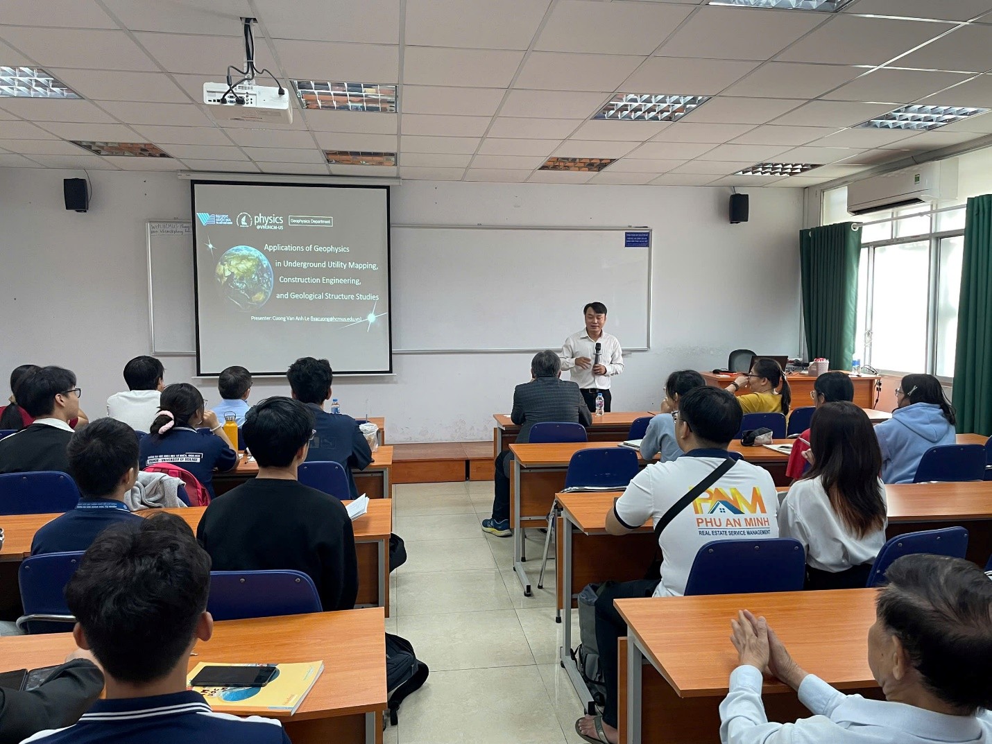 Sáng 04/02/2026, Bộ môn Vật lý địa cầu, Khoa Vật lý – Vật lý kỹ thuật đã tổ chức buổi seminar học thuật nhằm trao đổi và thảo luận về các ứng dụng thực tiễn của Vật lý địa cầu trong đời sống xã hội và phát triển bền vững. Chương trình thu hút sự tham gia của giảng viên, nhà nghiên cứu và sinh viên trong và ngoài khoa với hai báo cáo khoa học.