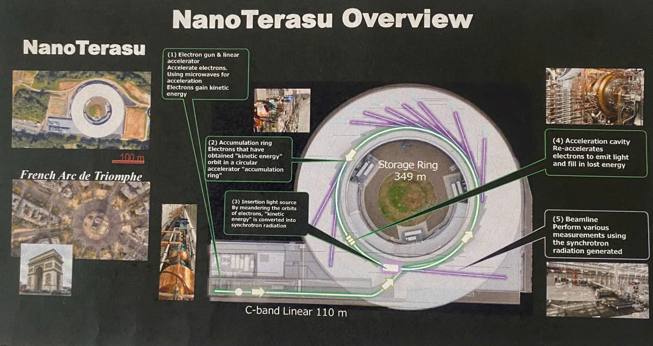 Hình 1. Nano Terasu Center với đường dẫn tạo chùm X-ray đường tròn 349m là niềm tự hào của Tohoku University và Nhật Bản đã vận hành từ năm 2024