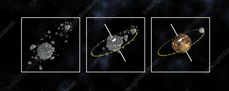 Hình ảnh minh họa quá trình hình thành Mặt Trăng theo thuyết Đồng hình thành (Nguồn ảnh: Science Photo Library)