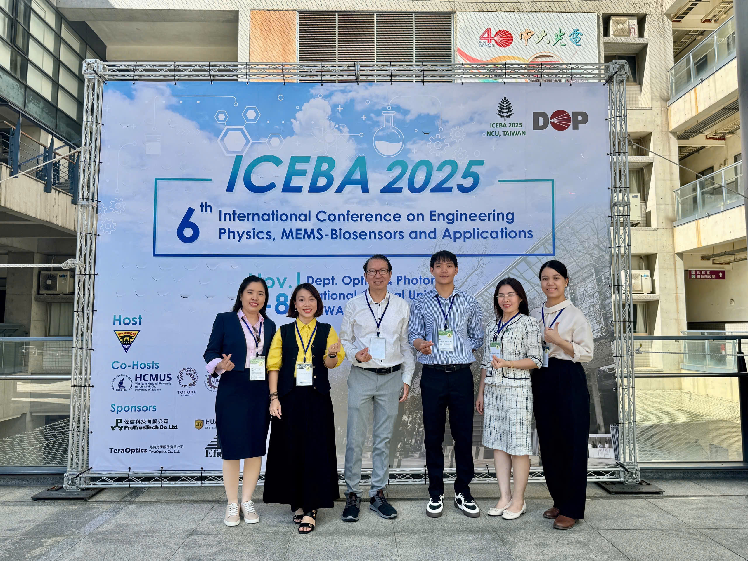 Hội nghị Quốc tế lần thứ 6 về Kỹ thuật, Vật lý, MEMS – Cảm biến Y sinh và Ứng dụng năm 2025 (ICEBA 2025) do Trường Đại học Khoa học tự nhiên, ĐHQG TP.HCM phối hợp cùng Đại học Tohoku (Nhật Bản), Đại học Quốc lập Trung ương Đài Loan (NCU) và Trường Đại học Quốc tế Miền Đông (EIU) đồng tổ chức đã chính thức khép lại sau hành trình làm việc sôi nổi tại hai điểm cầu Đài Loan và Việt Nam. Hội nghị được tổ chức theo hai phiên tại Trường National Central University, từ ngày 06/11/2025 đến ngày 08/11/2025 (Đài Loan) và tại Eastern International University, từ ngày 01/11/2025 đến ngày 12/11/2025 (Bình Dương, Việt Nam)